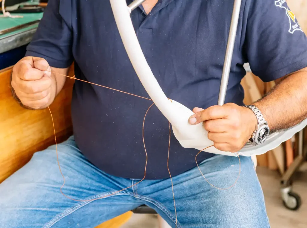 Cada pieza se trabaja a mano, con atención al detalle y respeto por la estética de cada embarcación. Sus servicios incluyen la confección e instalación de fundas de timón, protecciones de cuero, refuerzos estructurales, tapicería y más, todo realizado directamente a bordo o en sus instalaciones.